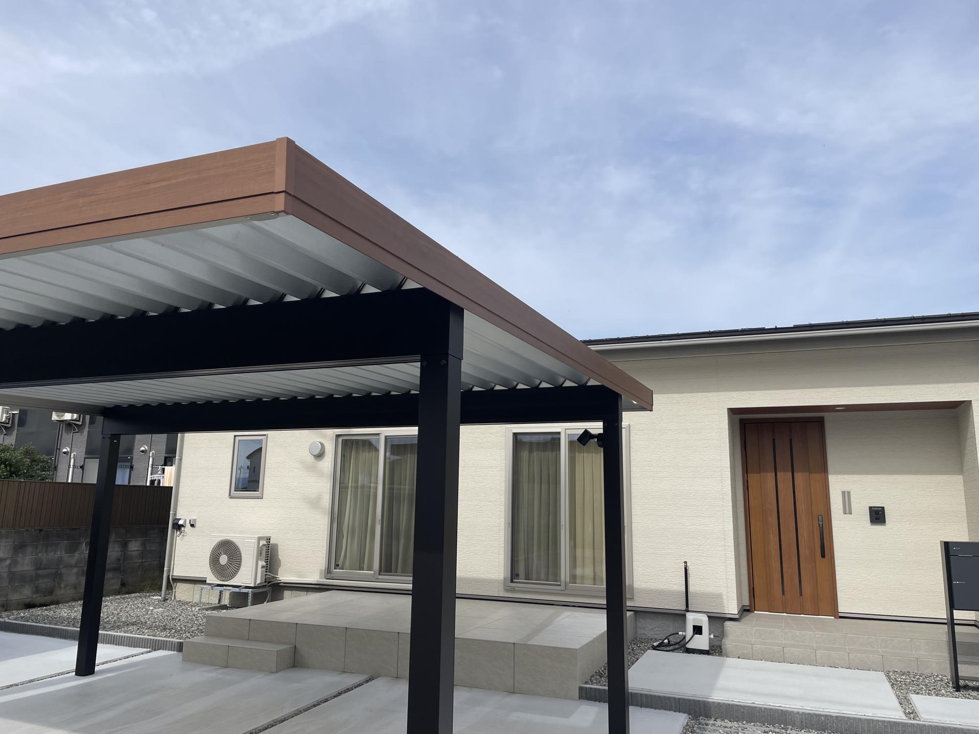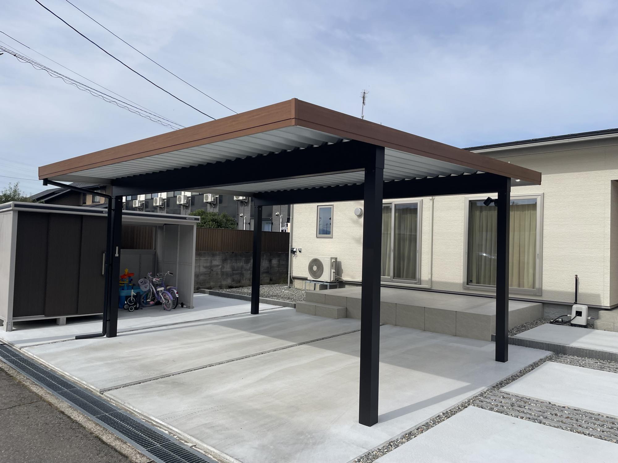 木調のものを採用することでアルミ色のカーポートとはまた一味違ったスタイリッシュな印象になりました。